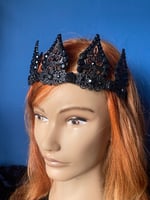 Encusted in masses of black rhinestones, it will shimmer despite its darkness.