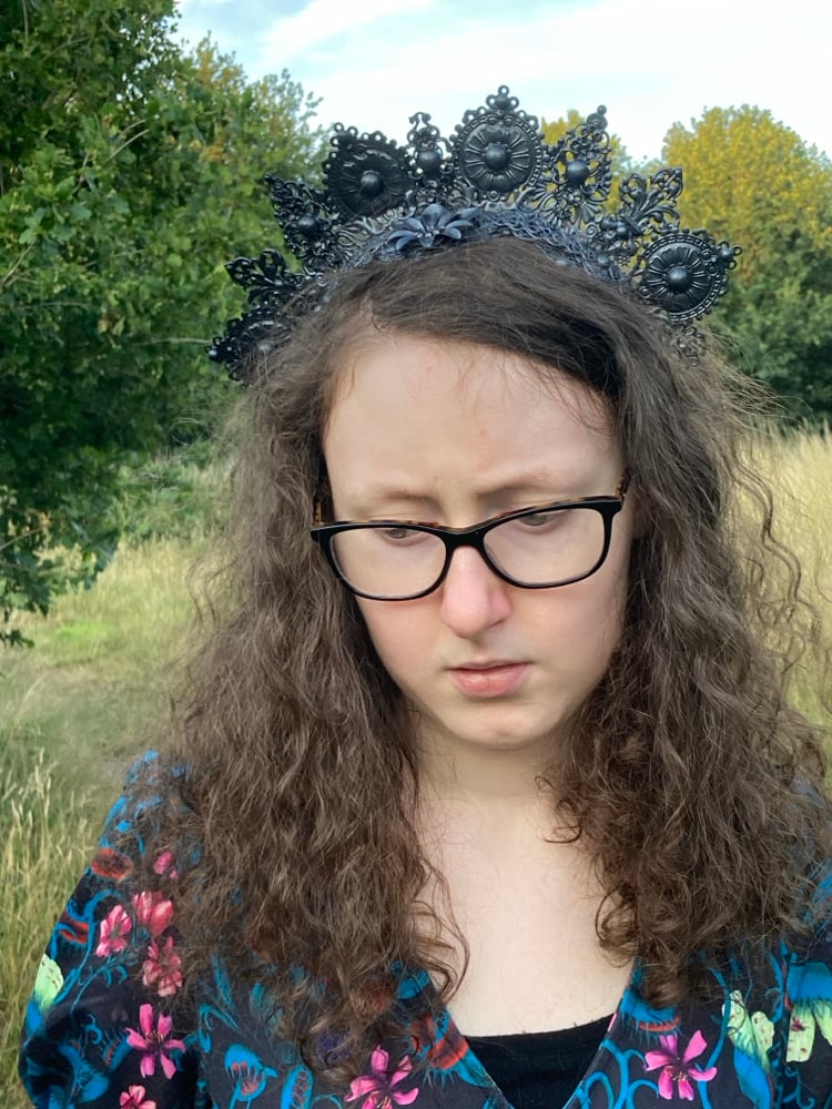 Thunder is an upright halo style headdress that comes in the colours of a stormy sky.